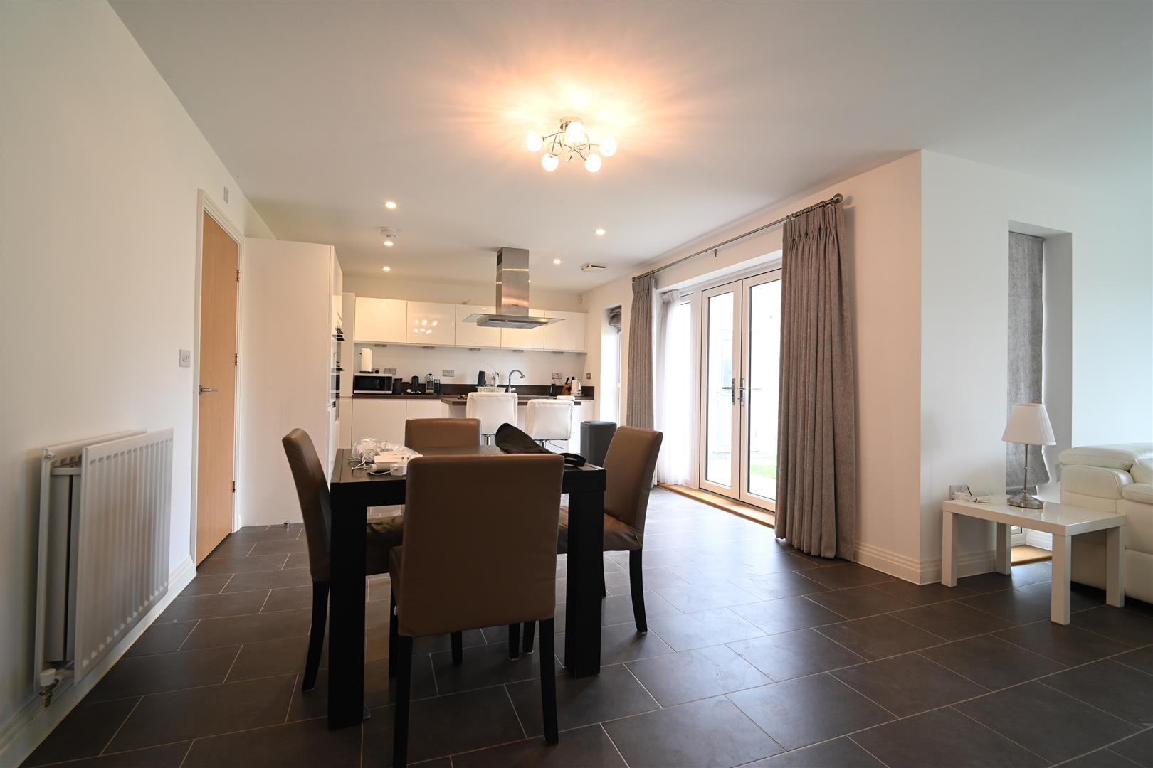 Internally, the home is perfectly designed for modern family living. The generous ground floor layout features a large living and dining room, which connects seamlessly via double doors to an additional, separate lounge or family room. The accommodation is further complemented by a practical laundry room.